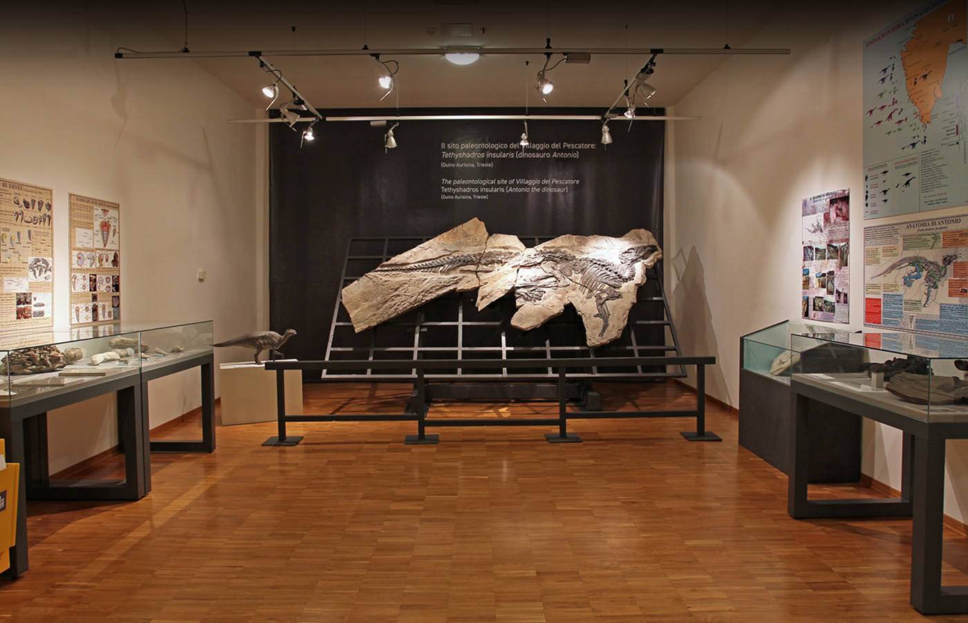 Noto a tutti come Antonio, il Tethyshadros insularisè uno dei dinosauri più completi mai trovati al mondo, e fa bella mostra di sé tra gli altri reperti rinvenuti al sito del Villaggio del Pescatore